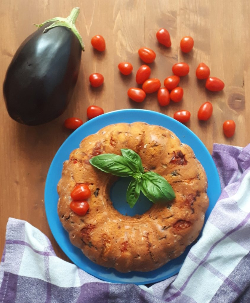 APPASSITE LE MELANZANE AGGIUNGETE LENTAMENTE LA FARINA INSAPORIAMO CON ERBE AROMATICHE METTIAMO I POMODORINI SUL FONDO VERSIAMO IL COMPOSTO