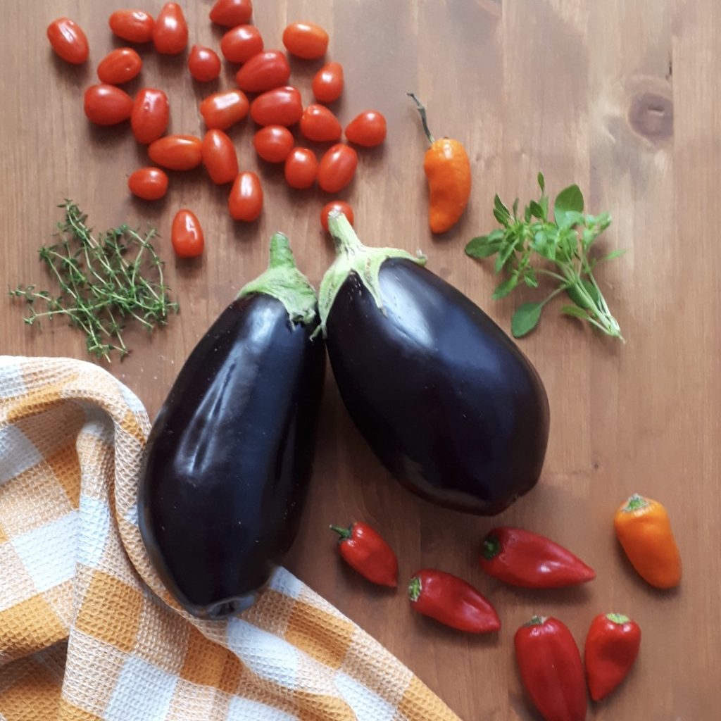 Così, aprendo il frigorifero, mi sono trovata davanti una bella melanzana, dei peperoncini dolci e dei pomodorini piccini piccini e via un avanzo di scamorza e qualche erbetta del mio balcone/orto/limonaia/rifugio della disperazione e il gioco è fatto.