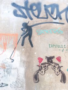 Ma a Firenze non solo Blub ha lasciato la sua impronta. Troviamo anche altri graffiti sui muri dei palazzi. Il messaggio è all’incirca il medesimo, piccoli “omini” stilizzati che seguono il cuore per venir fuori da brutte situazioni. L’artista è Exit Enter