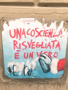 Girellando per le sue viuzze e guardandosi intorno impossibile non notare i numerosi graffiti sui muri del tutto non invasivi. Un espressione d’arte che ovviamente può essere anche oggetto di discussione ma a nostro modesto parere capace di dare un senso distintivo di bellezza alla città.Un itinerario diverso scandito da una simpatica “caccia al tesoro” per le vie del bellissimo capoluogo toscano.
