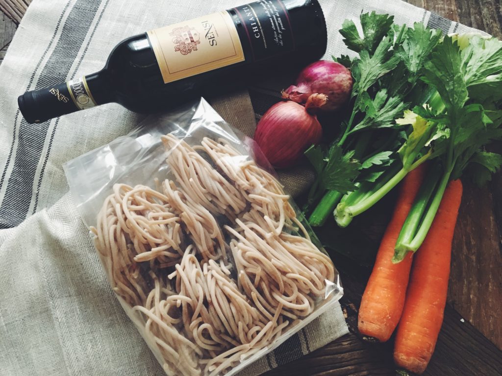 Per fare il sugo finto si comincia facendo il classico battuto fine con sedano, cipolla e carota.Tritateli tutti e poi fateli dorare a fuoco basso per circa 10 minuti in una pentola olio evo. Quando saranno coloriti e appassiti sfumateli con il vino rosso e sempre a fuoco basso fatelo ritirare quasi del tutto. Adesso aggiungete i pomodori pelati, passati oppure no, regolate di sale e pepe…Lasciate cuocere al minimo per circa un ora o finché non risulterà un sugo denso..non contiene CARNE ma vi assicuriamo che non ve ne accorgerete!!!