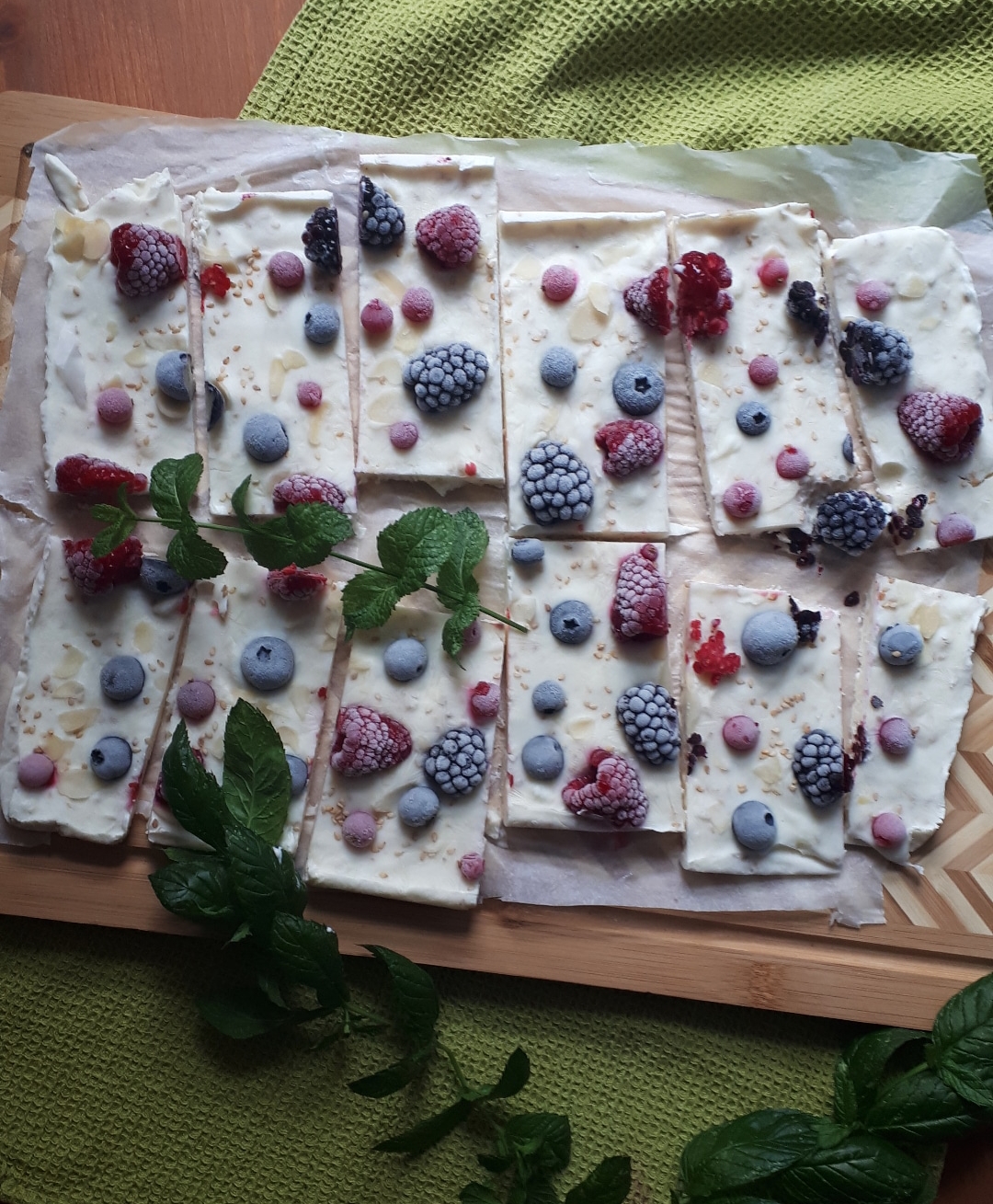 Trasferiamo un tagliere e con un coltello affilato tagliamo le barrette e… pronti via… gelato alternativo pronto da essere assaggiato.
