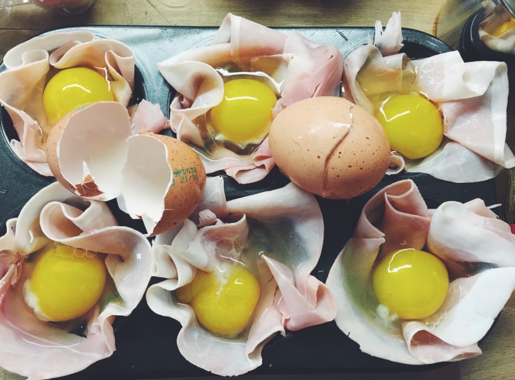 La cosa BELLA di questi cestini è che si montano e cucinano negli stampi dei MUFFIN. Se ci seguite avrete notato che abbiamo creato tante ricette usando questi stampini. Gli abbiamo usati per preparare antipasti veloci, sfiziosi e facilissimi proprio grazie al loro utilizzo. In questo caso abbiamo usato del prosciutto cotto ma lo potete sostituire con speck o prosciutto crudo. L’obiettivo può anche essere quello di svuotare il frigorifero. Ovviamente le quantità sono una per persona a seconda di quanti ne farete…Nel nostro caso 6 fette di prosciutto e 6 uova…