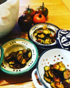 Mettetele in una teglia foderata con carta da forno, spennellate con olio extravergine d’oliva e spolverizzatene una parte con curry in polvere, una parte con grana grattugiato, con peperoncino in fiocchi e l’ ultima con qualche goccia di glassa di aceto balsamico e un pizzico di fleur de sel.