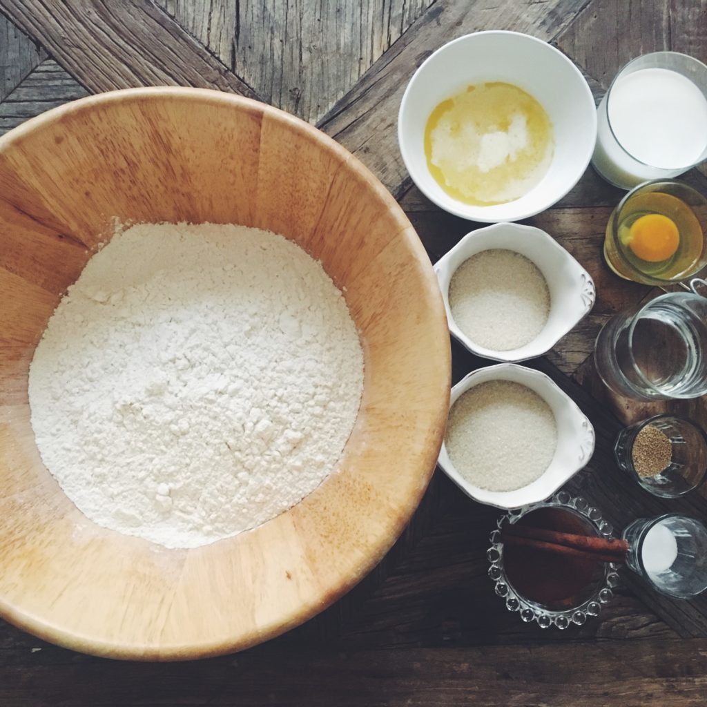 Versate quindi in una ciotola tutti gli ingredienti secchi, quindi la farina e lo zucchero, il lievito secco, il sale e mescolate.