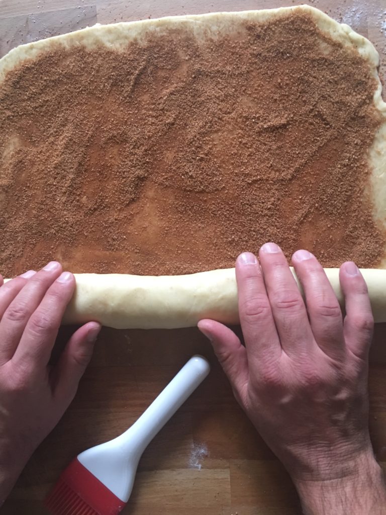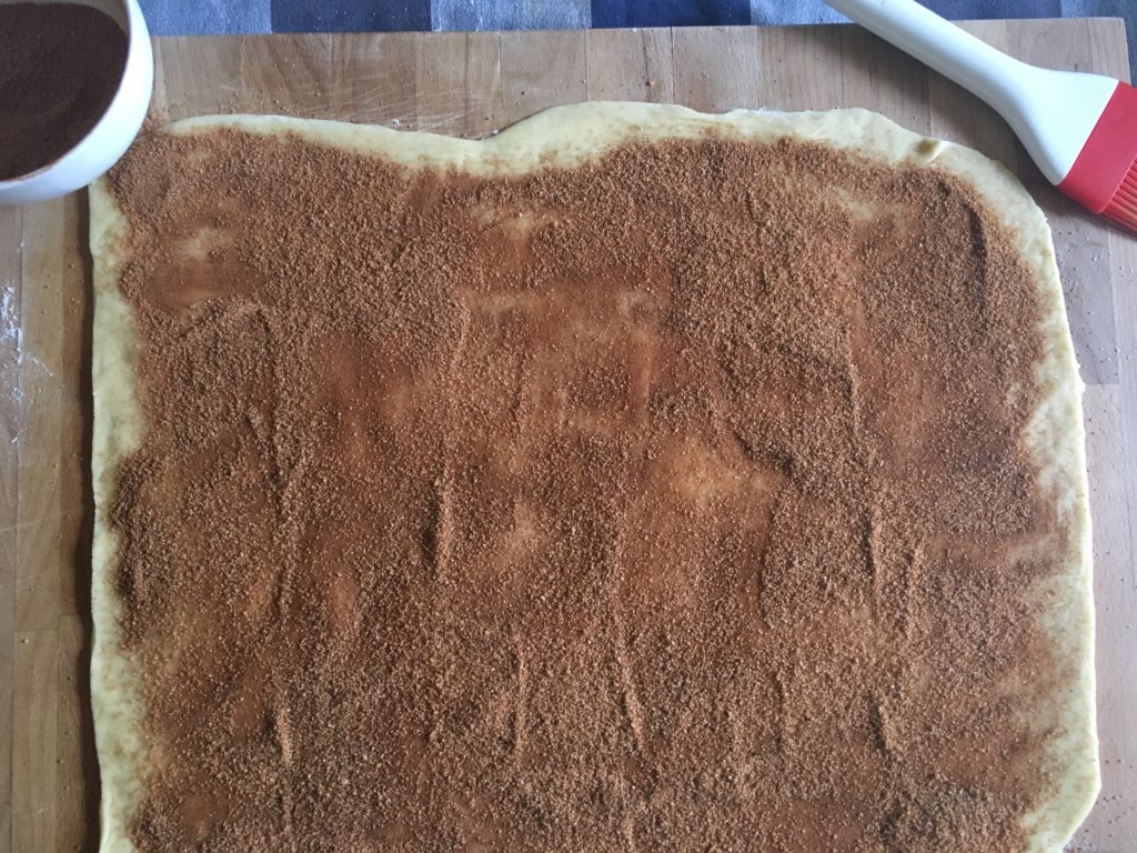 Spennellate con la cannella e lo zucchero di canna tutta la superficie della pasta stesa