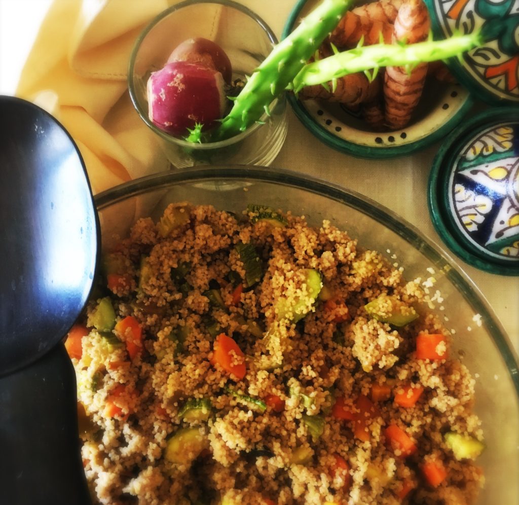 Cuocete il cous cous d’orzo (molto profumato) come descritto sulla confezione.