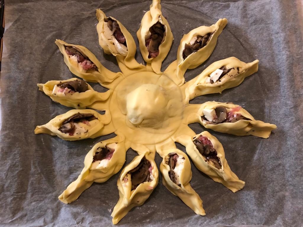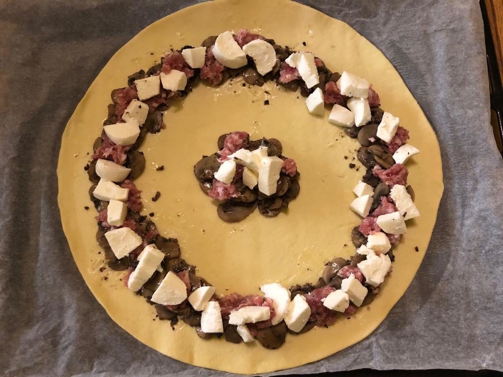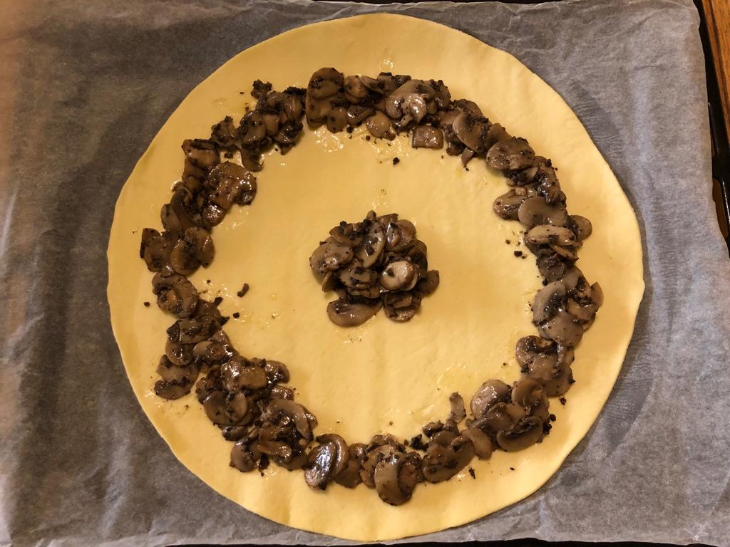 Iniziamo con il pulire i funghi, tagliarli e farli rosolare in una casseruola con due cucchiai d’olio evo. Potete mettere uno spicchio d’aglio che poi andrete a togliere per insaporire i funghi, personalmente preferisco non metterlo. Fate cuocere i funghi per 5/7 minuti. Quando saranno pronti aggiungete a piacere due cucchiaini di salsa tartufata e mescolate. Tagliate adesso a piccoli pezzi la mozzarella. Prendete la pasta brisè e adagiatela su una teglia rivestita con carta forno e iniziate a mettere la farcitura. Una volta farcito disponete sopra il secondo cerchio di sfoglia e con una forchetta chiudete molto molto bene i bordi.