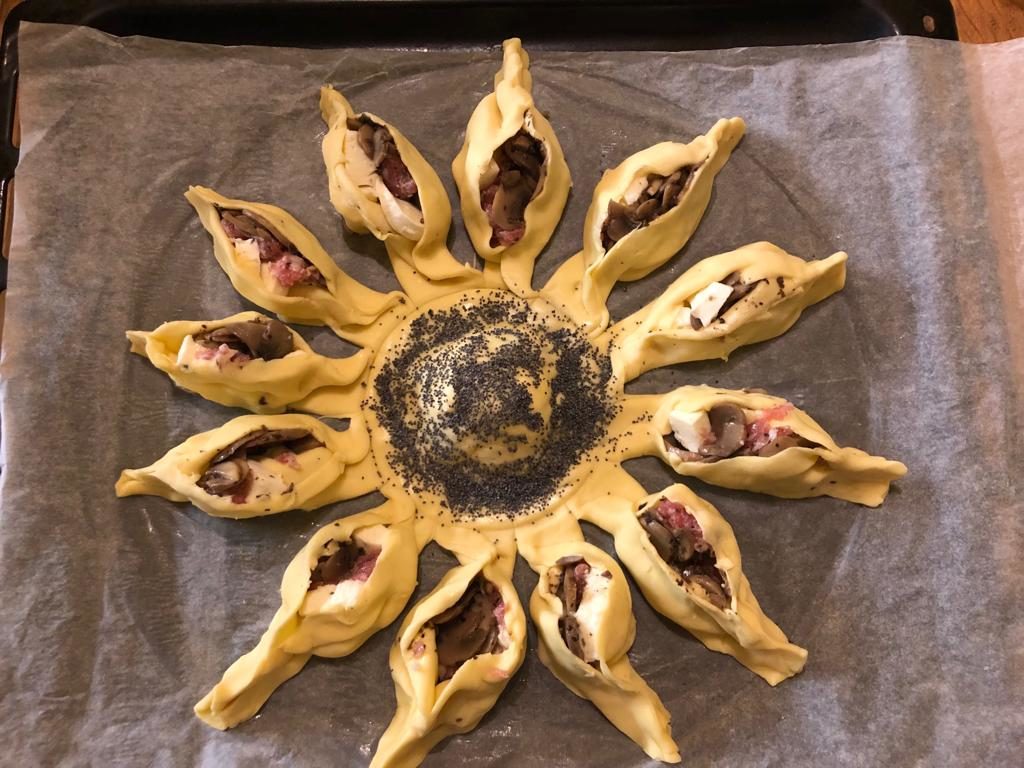 Prendete ogni singolo spicchio e fatelo ruotare fino ad avere il ripieno verso l’alto e schiacciate la punta per formare il petalo.