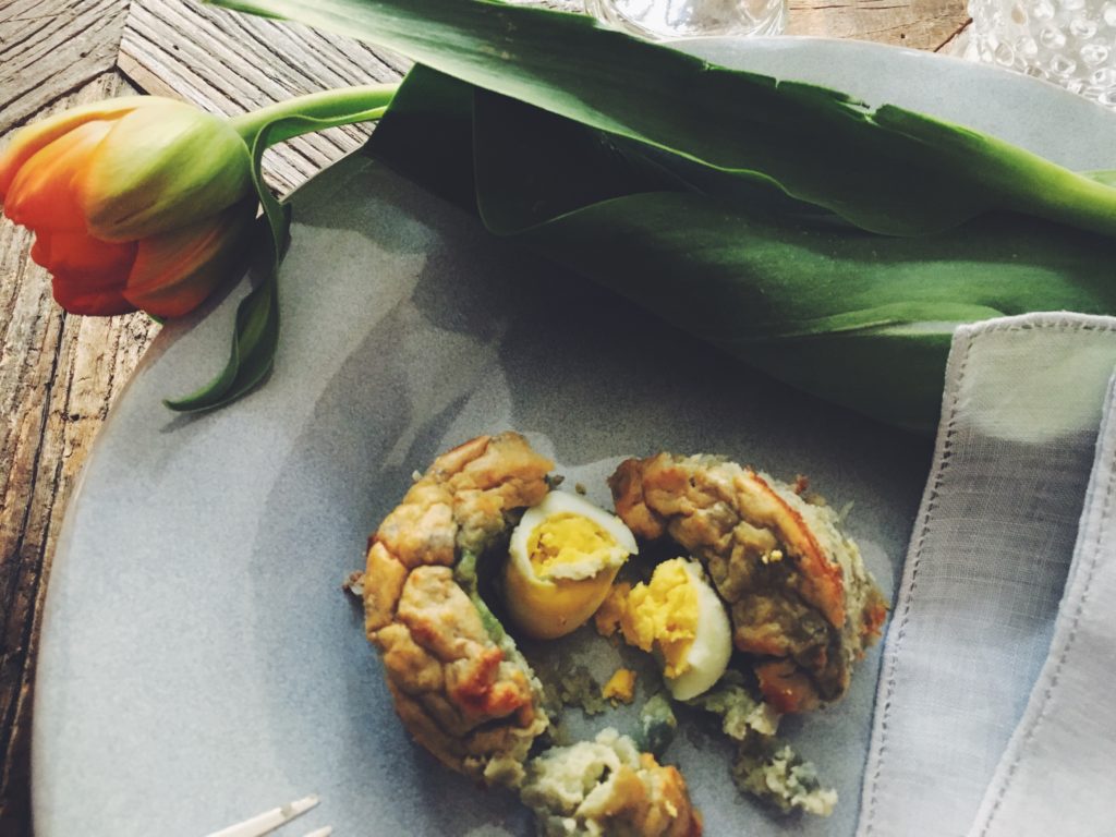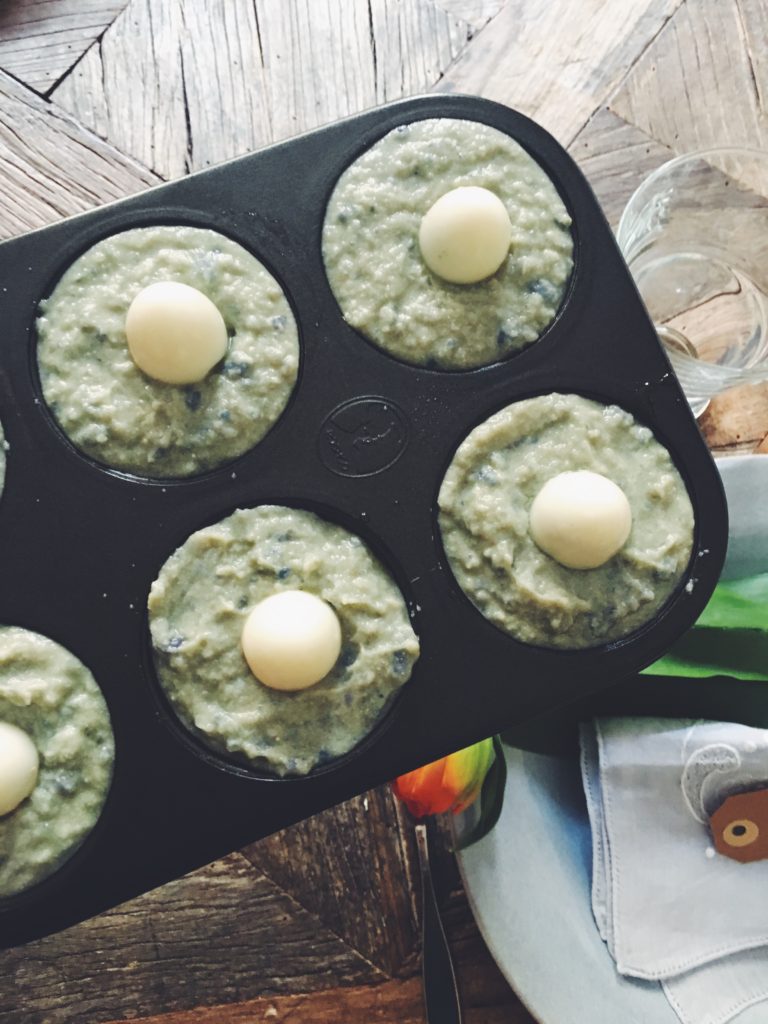 Ungete gli stampini con un po’ d’olio e versate il composto ottenuto. Al centro del flan inserite un ovetto di quaglia precedentemente lessato.