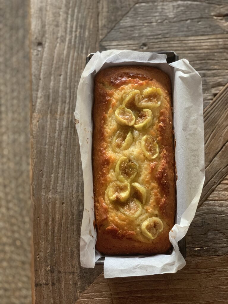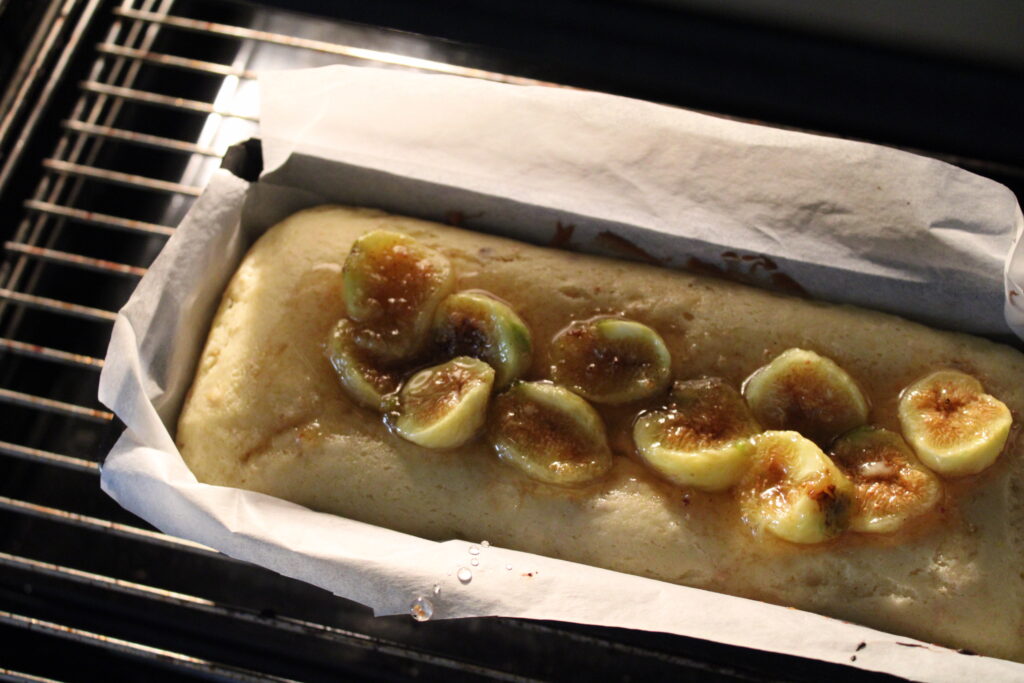 Foderiamo uno stampo da plumcake con carta da forno e versiamo l’impasto cremoso. Inseriamo qualche pezzo di fico caramellato all’interno distanziati tra loro.