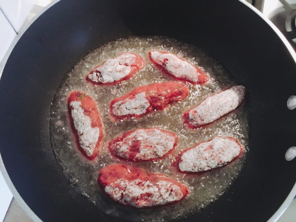 Formate adesso delle polpette ovali aiutandovi con due cucchiai e passatele nella farina