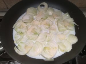 Cuocete i finocchi tagliati a fette sottili nel latte e preparate la besciamella.