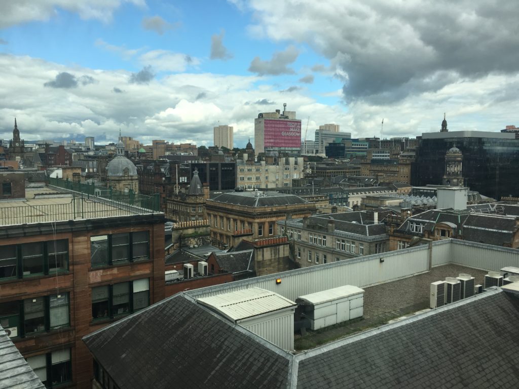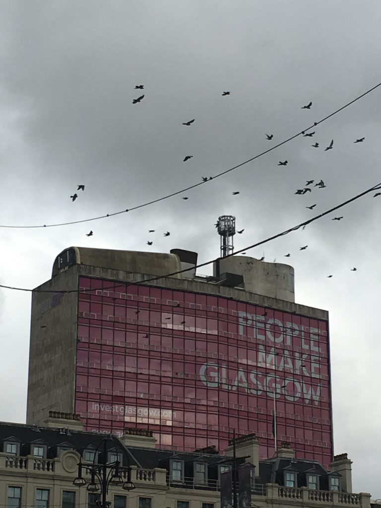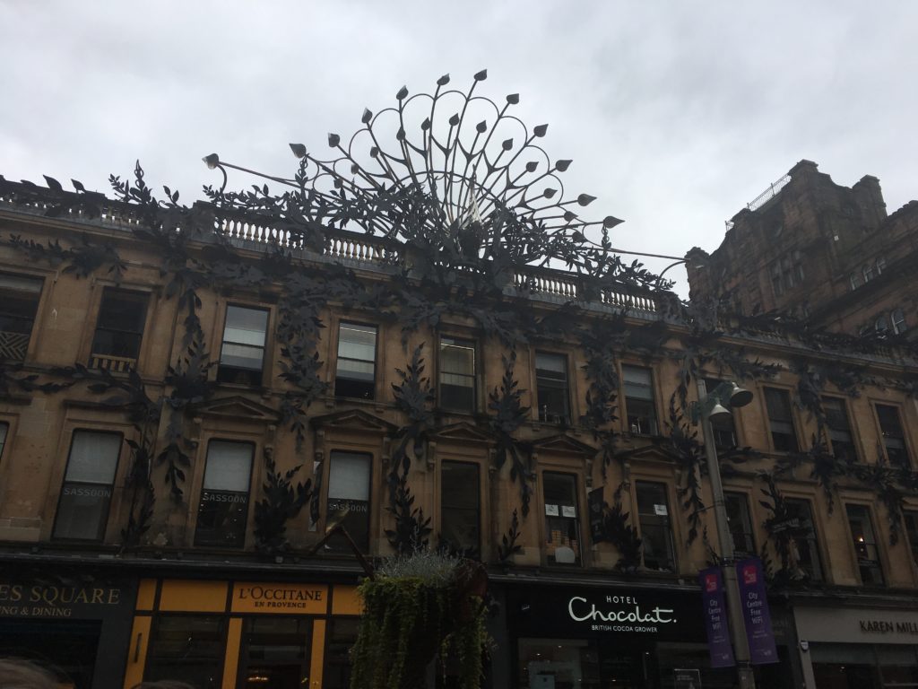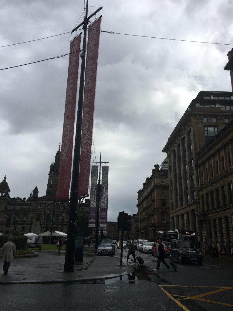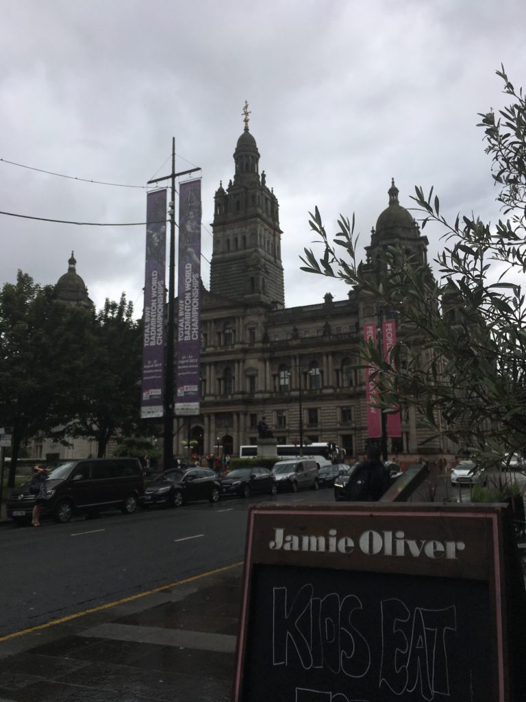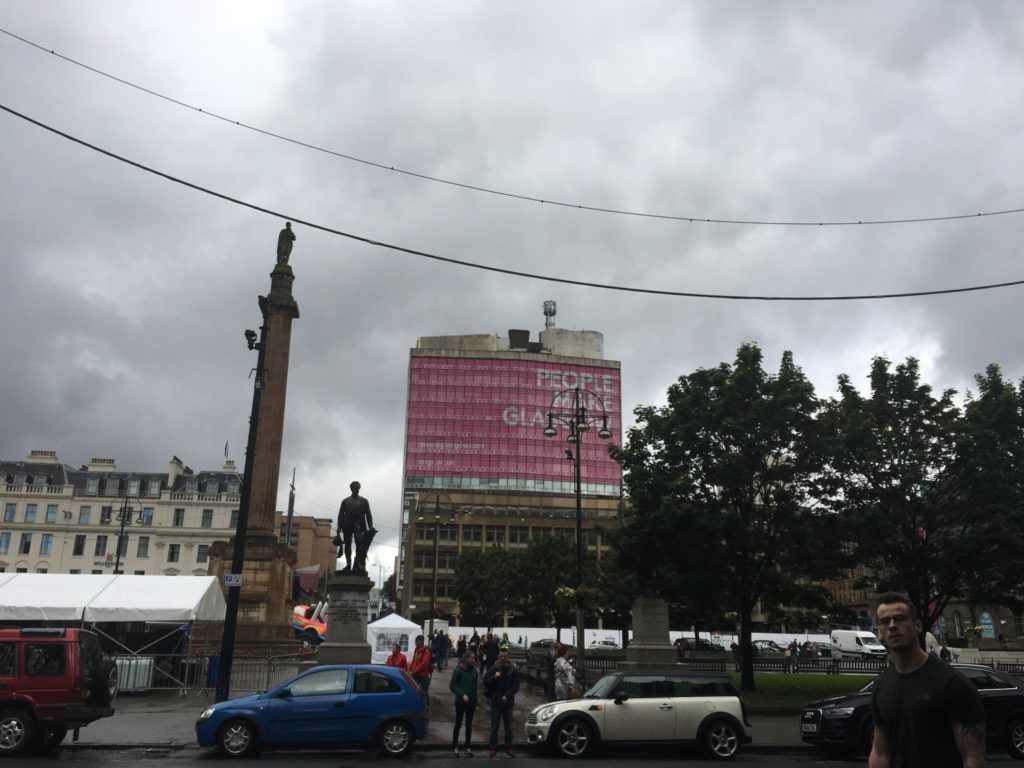 con le sue case in stile georgiano, gli hotel, la stazione della ferrovia Glasgow-Edimburgo e, infine, l’edificio più importante, la Glasgow City Chambers ovvero il Municipio. Quando ci siamo stati noi c’era montato un palco con musica e un mercato di prodotti gastronomici tipici scozzesi. Piazza maestosa davvero molto bella!
