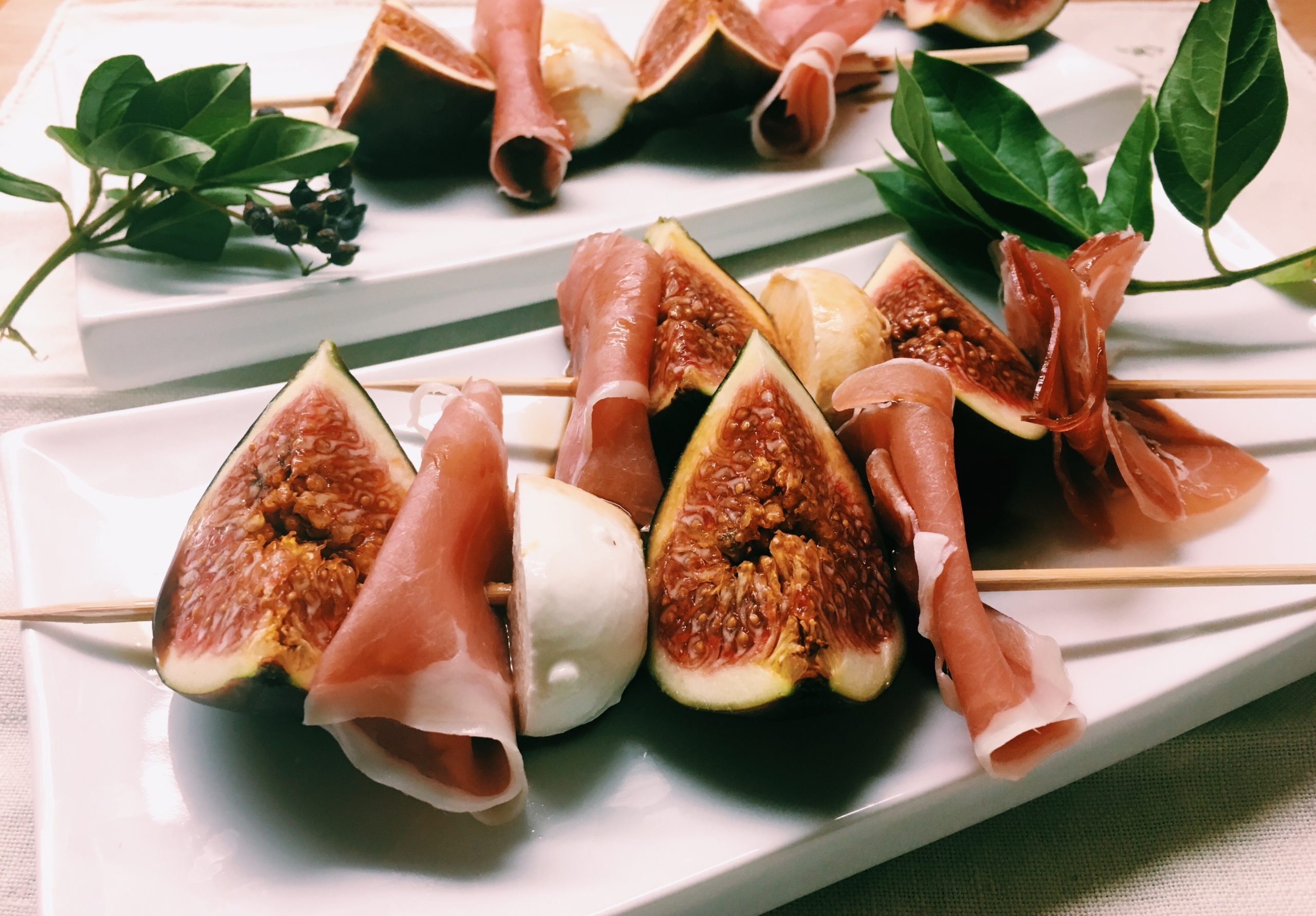 Sbucciate i fichi e tagliateli in quarti, conditeli con sale, pepe, qualche goccia di aceto balsamico e lasciateli marinare per 10 minuti. Tagliate la mozzarella a pezzetti. Infilzate in uno spiedino 1/2 fettina di…